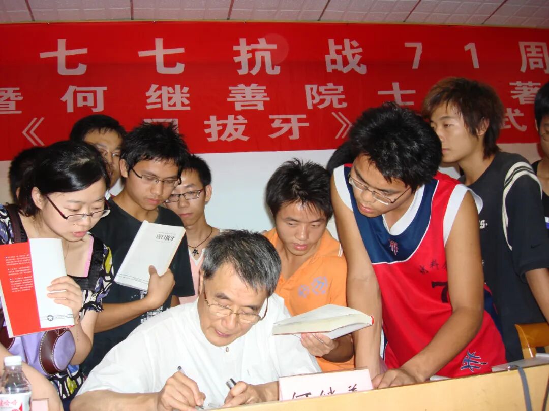 何继善最重视的还是青少年的爱国教育。2008年,在纪念“七七事变”71周年的日子里,何继善决定将翻译的《虎口拔牙》一书免费赠送给学生们。该书是美国“飞虎队”飞行员唐纳德·斯·洛佩兹的战斗回忆录,相似的经历让何继善感慨良多,“书中故事我感同身受,它激起了我太多的回忆,思绪中饱含着对日本帝国主义的无比仇恨和对今天和平生活的温馨与幸福的热爱”。