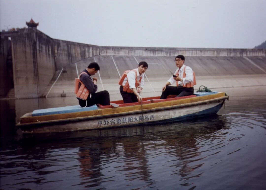 1998年,何继善(右)带领团队在浏阳株树桥水库排险。