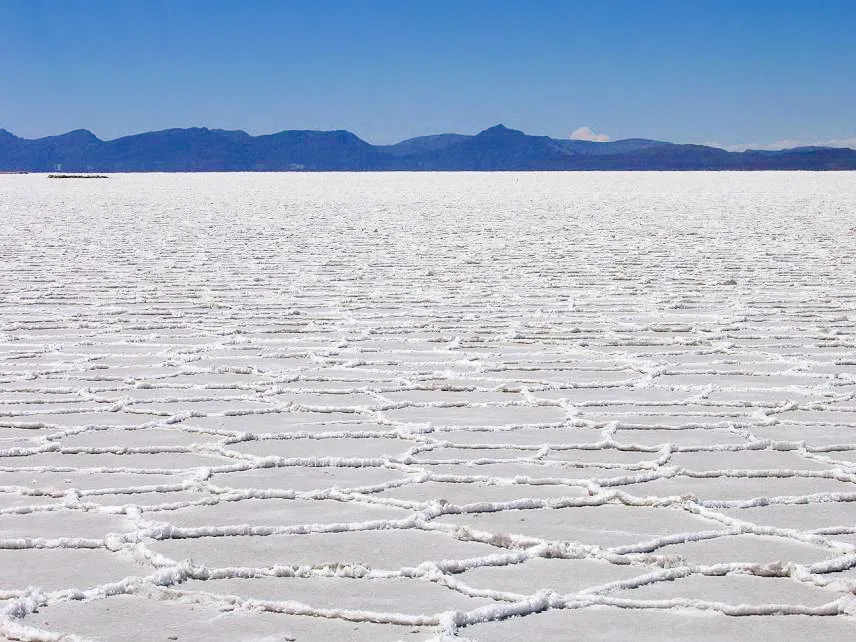乌尤尼盐沼上结晶的盐形成了六边形(图片来源:wiki)