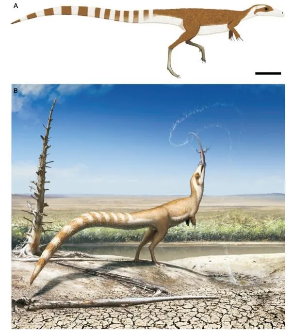 中海鸟龙复原图,这也是首个被科学家恢复体色的恐龙 图源/网络