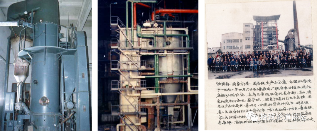 ▲左:1982年北京中关村 2.8MW循环流化床燃煤锅炉(我国首台CFB工业装置)