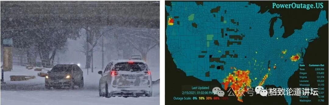 右:美国2021年2月15日的停电地图