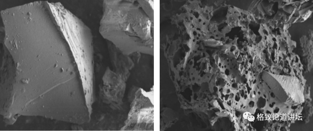气体都很好烧,但固体这部分呢?从上图中可以看到,改性前,煤颗粒表面光滑致密;改性之后,煤颗粒变成蜂窝状,多孔、疏松,更多的氧气容易进入。它燃烧的速率可以达到常规煤的20倍,实现了快速、充分地燃烧。