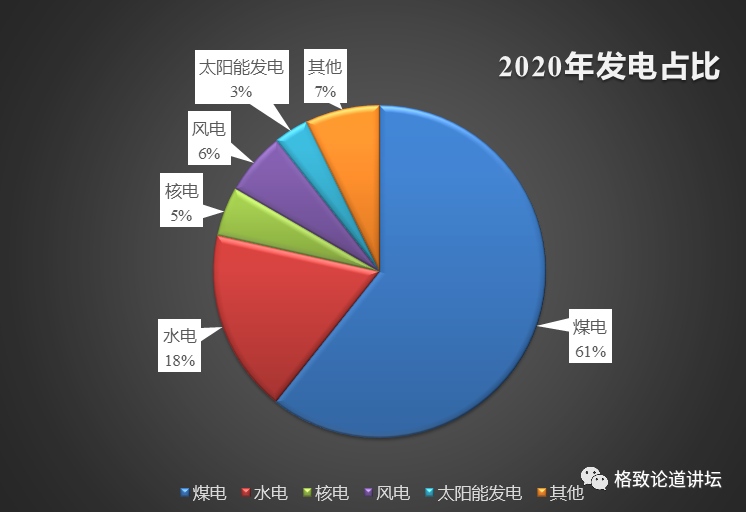 我们国家燃煤发电占电力供应的60%,是发电的主力,它每年要烧掉16亿吨煤。煤的主要成分是碳,燃烧排放的是二氧化碳,所以煤电是二氧化碳排放的大户。