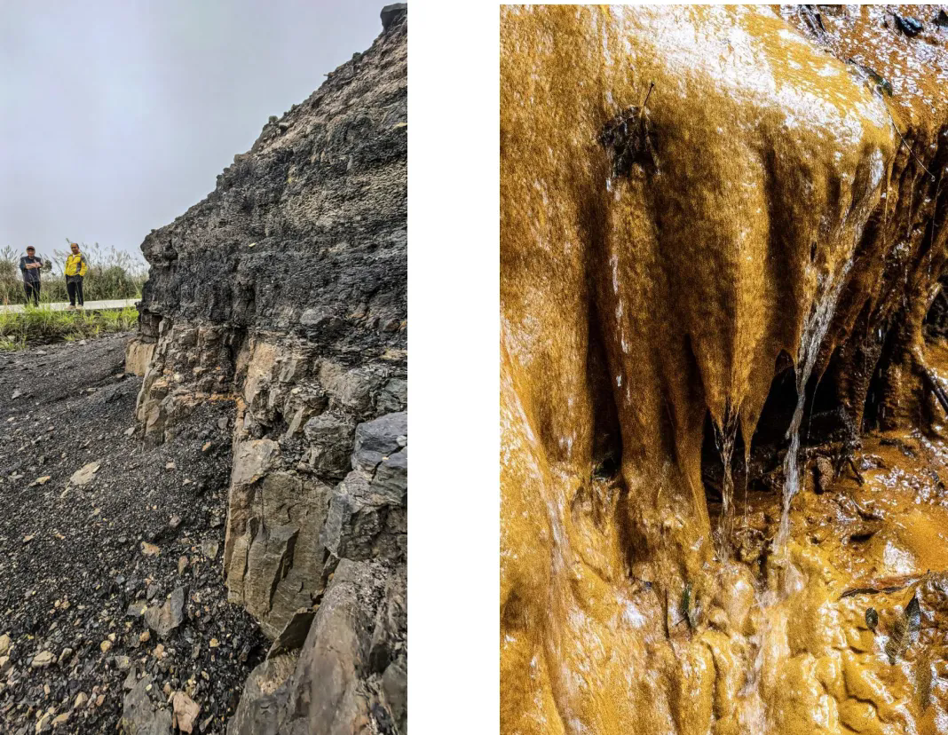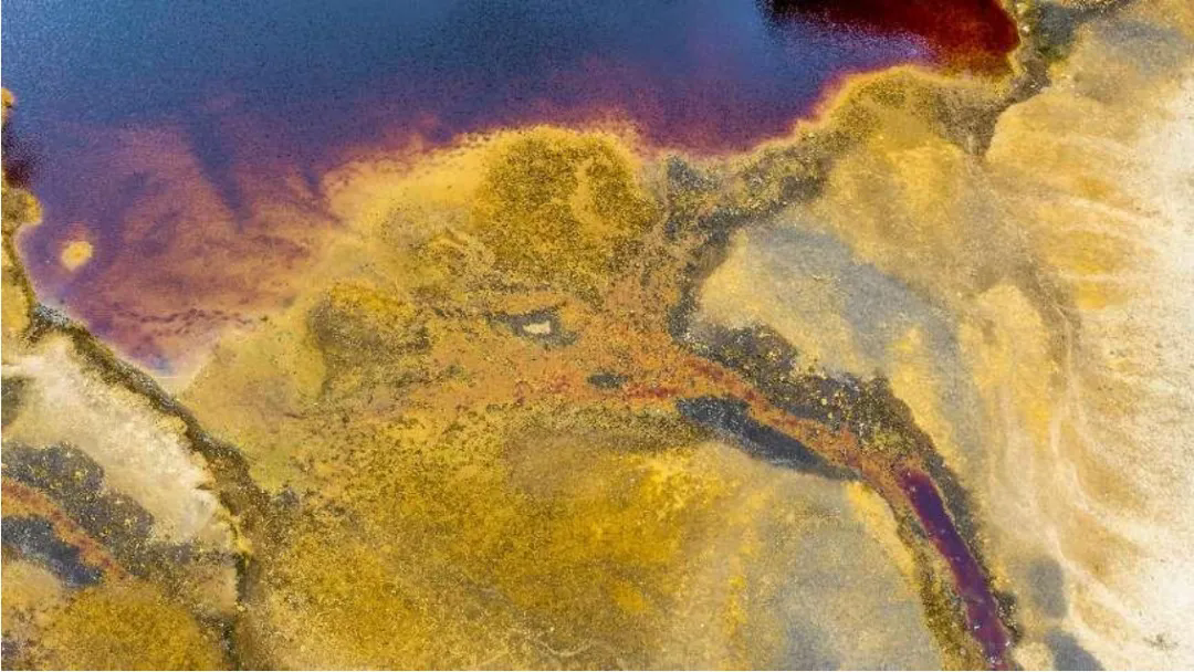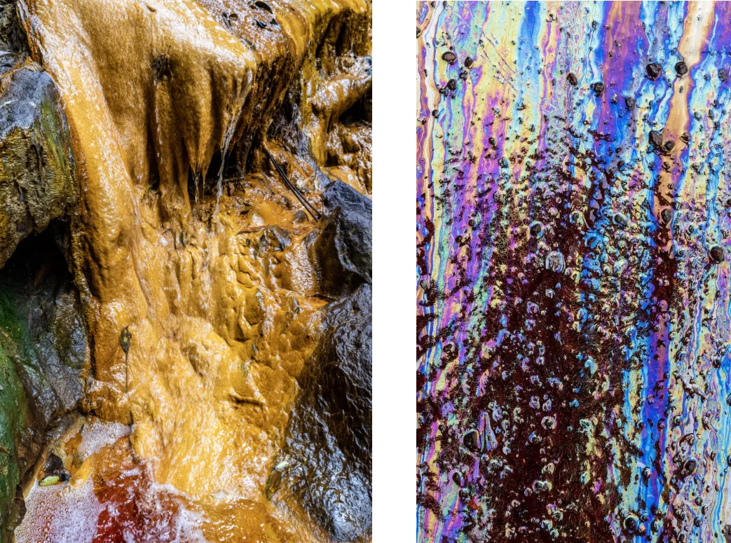 《黄色沟渠》(左)《矿物与水的自然交融斑斓》(右)