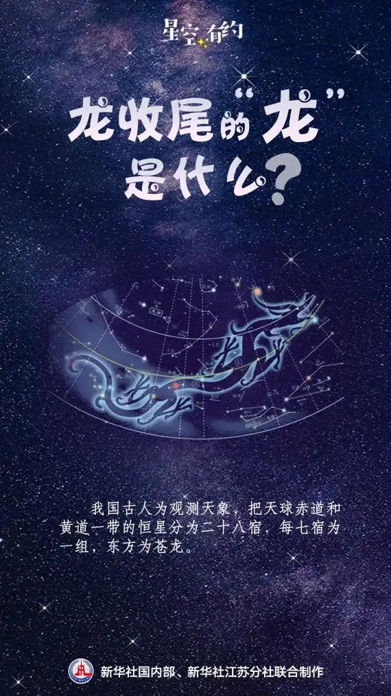 “‘龙抬头’‘飞龙在天’‘龙收尾’的‘龙’都指的是东方苍龙,由角、亢、氐、房、心、尾、箕七宿组成。”中国科学院紫金山天文台科普主管王科超说,角宿作龙头,亢宿为脖颈,氐宿为胸膛,房宿为龙腹,心宿是龙身,尾宿和箕宿共同代表龙尾,勾勒出一条龙的形象。