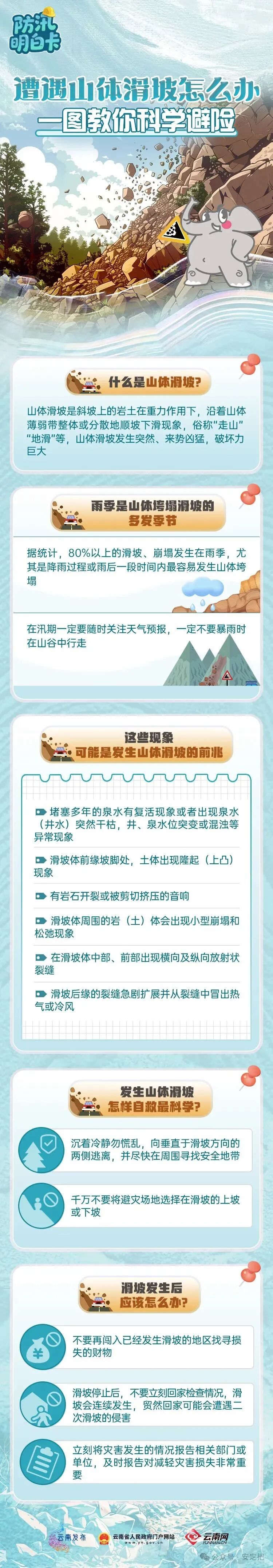 山体滑坡是一种常见的地质灾害,往往发生突然来势凶猛,破坏力巨大,短时间内会掩埋房屋,阻断交通造成人员伤亡,遭遇滑坡怎么办?应该如何自救?一图教你科学避险。