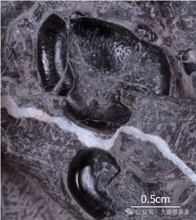 但是与存活至今的龟鳖类不同,豆齿龙类早在三叠纪末期就全部灭绝了,给研究造成了极大的限制。而且,随着越来越多的豆齿龙化石被发现,出现了新的围绕它们甲壳的谜团。瑞士苏黎世大学的古生物学家托斯滕·谢耶在2007年提出,豆齿龙类的真皮骨板很可能具有一种独特的发育模式,即不同于已知其他动物在真皮层内直接骨化的方式,豆齿龙类的真皮骨板很可能是先形成软骨组织,之后再骨化的。我们在此次研究中使用的2件保存完整精美的康氏雕甲龟龙标本,虽然可以清楚地看到甲壳内侧和外侧的形态,但也带来了新的谜题:一种奇怪的、从未见于其他豆齿龙的结构。