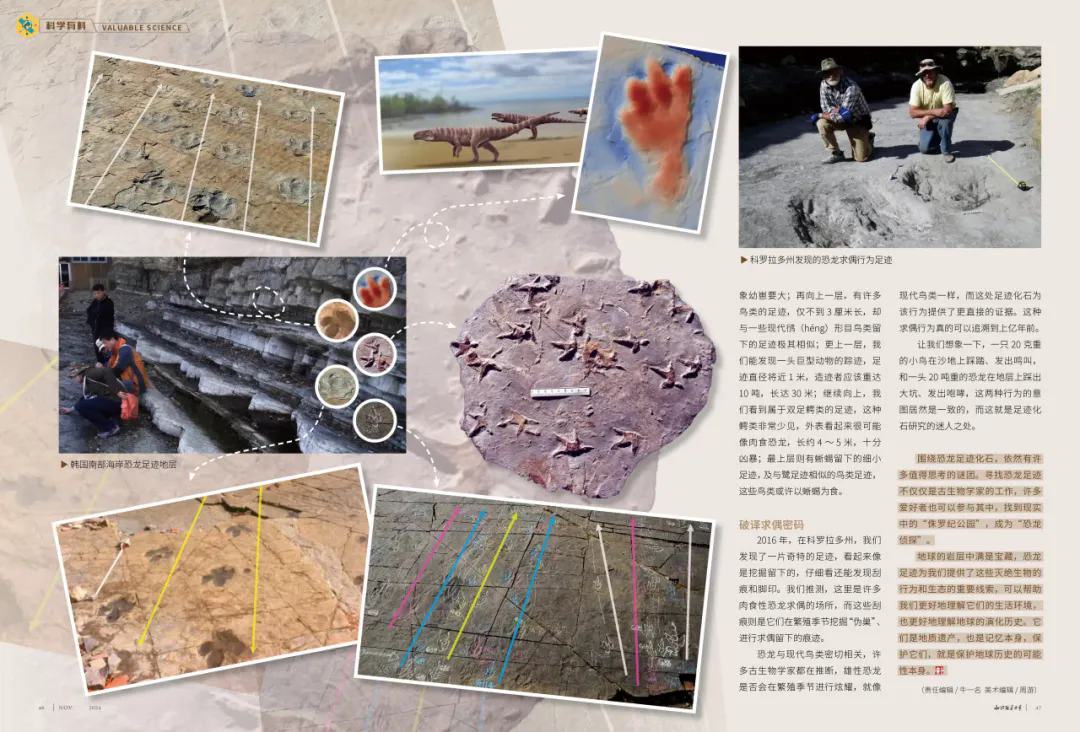 恐龙足迹化石是恐龙在适宜沉积物上留下的脚印化石,能反映其体型、年龄、行为及生态环境,相比骨骼化石,它还能提供恐龙行为与环境相互作用的证据,是解读恐龙日常的关键。