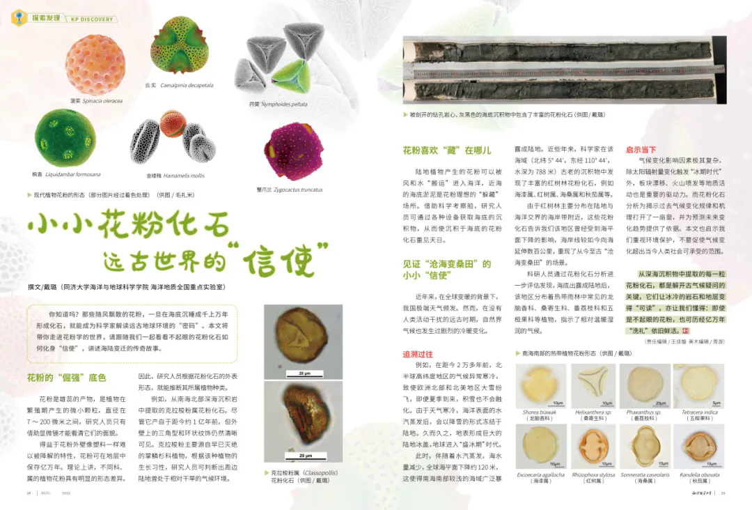 花粉化石是解读古地球环境的“密码”,花粉作为雄蕊产物,因外层壁特性可在地层中保存亿万年,其形态差异能让研究人员推断植物种类与古环境,如克拉梭粉化石可佐证南海曾为干旱气候。通过分析花粉化石,能还原“沧海桑田”的变迁。