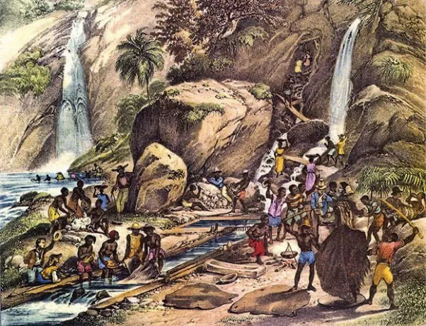 1695年,葡萄牙殖民者在巴西东南部的米纳斯吉拉斯州发现巨型砂金矿,吸引了数十万葡萄牙移民,还带来40万非洲奴隶。