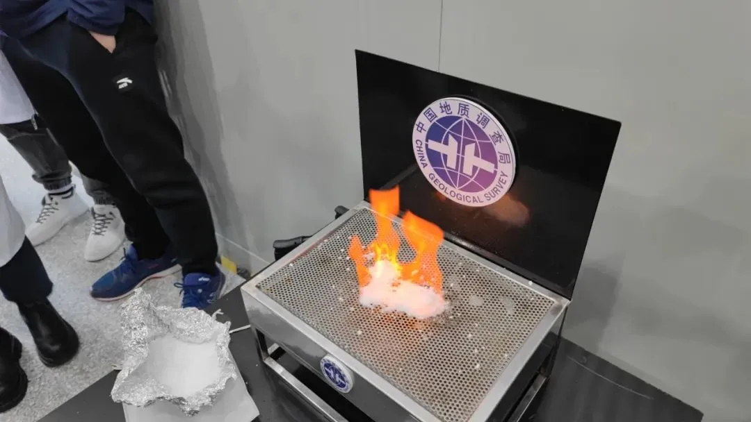 2017年5月10日下午14时 52分点火成功,从水深1266米海底以下203-277米的天然气水合物矿产开采出天然气。