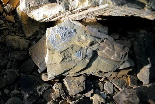 再往上走,就会发现一个小土丘,土丘上布满了碎石片。可别认为它只是个普通的小山丘,这里可是有名的三叶虫化石的聚集地,小小的三叶虫见证了这里曾是海洋深处的历史。三叶虫是生活在6亿年到2亿多年前的古老节肢动物,在当时它几乎占据了整个海洋,是古生代一霸。到了中生代已完全绝灭。目前,全世界已发现的三叶虫化石约四千多种,我国是发现三叶虫化石最多的国家之一,有1千多种。三叶虫化石又叫燕子石,也叫蝙蝠石。它历史悠久,据记载,宋、明、清时代已有人把玩,称之为“多福石”、“鸿福石”。从上个世纪初,中国一代又一代的地质科研人员不断探索研究,在馒头山地区发现了17个三叶虫生物带,并确定馒头山为一处最完整的寒武纪地层层型剖面,从而成为中国寒武纪地质结构划分的标准山。