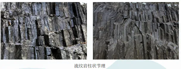 三百山保存有完好的古火山口、火山湖和遍布的流纹岩柱状节理,是江西独有的火山地质景观,在全国风景名胜区中,保存如此完好的火山口构造十分罕见。火山地貌主要位于东风湖两岸、福鳌塘一带的裸露区域,其分布有垂直而密集的柱状节理天然石质景观,是较为明显和具有代表性的火山地貌遗迹。火山口外环位于景区中南部东风湖、福鳌塘一带,由呈弧形展布的流纹岩、流纹质晶屑凝灰岩、流纹质熔结凝灰岩等构成。流面形状平缓,微向南西侧倾斜。垂直于流面的 2-3 组节理,使岩石成为密集的四方、六方体柱,柱高 10 余米至数十米,直径数十厘米至 1 米多,成带分布,鳞次栉比,排列于东风湖畔、九曲十八滩侧,与湖景、潭景、瀑景相映成趣,蔚为壮观。