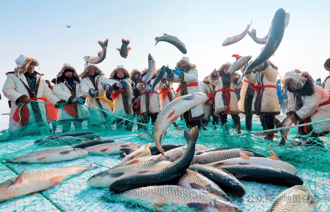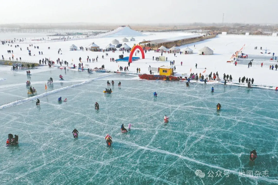 每年1月中旬至2月底的冬捕佳期是博斯腾湖重要的冰雪旅游旺季,当地充分发挥资源优势,围绕冬捕活动,精心开展了丰富多彩的冰雪娱乐项目,五湖四海的游客纷至沓来,共赏冬日里博斯腾湖的独特盛景。图/VCG