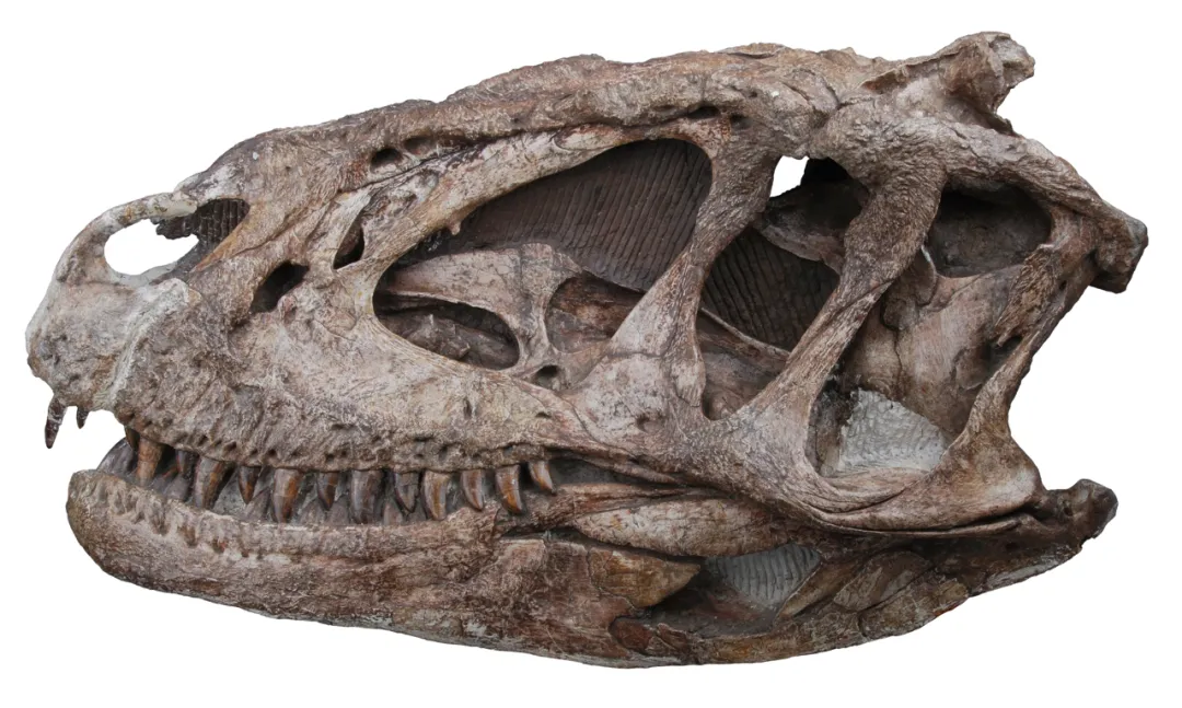 在我的家园,我们面临最大的敌人就是一种巨齿龙类。从大分类上,我其实和它是“一家人”,因为我和它骨盆上的三块骨骼都是三射形的,和蜥蜴类似,所以我们都是蜥臀目恐龙。最开始发现它同类的地点是重庆永川区,故将其属名定为永川龙,后来在自贡市和平乡上沙溪庙组地层中也出土了它的骸骨,研究人员给他起名和平永川龙。不过,真是名不副实,它一点不爱好和平。它体长约9米,体重约8吨。头的长度超过1米,眼眶大,视力极好。嘴里长有令人不寒而栗、利剑般的牙齿,前肢的三根爪子锋利,后肢粗壮,两足行走;长长的尾巴,站立时着地可以支撑身体,而在行走和奔跑时,则抬起来平衡身体。它真正诠释了什么叫弱肉强食,像个头小的盐都龙经常就是它塞牙缝的点心。吃不饱,就打起我们大型植食性恐龙的主意。虽然从食性上我们是吃素的,但是论战斗力我们都不是吃素的——古生物学家曾经在一块永川龙的左肩胛骨上发现断裂后愈合的现象,这显然是在打斗中受的伤,并且很可能是被尾锤击伤的?是谁打伤了它,这就需要你去想象了。