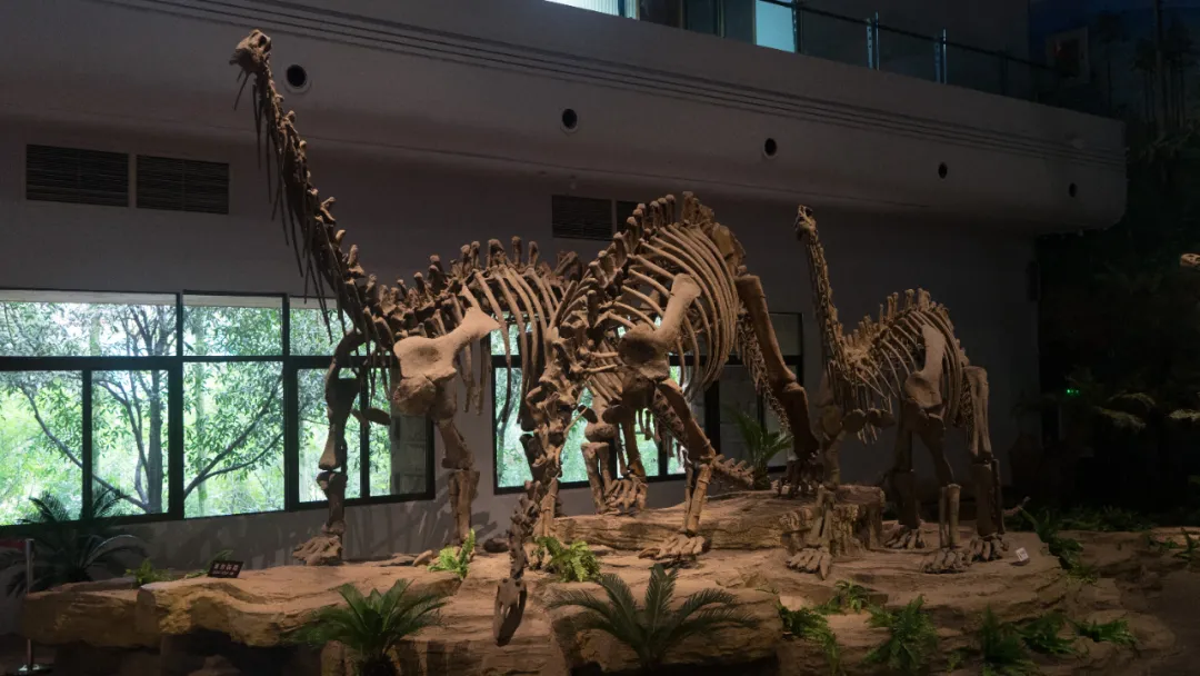 自贡恐龙博物馆中展示的李氏蜀龙“温馨家庭” 摄影/李毅
