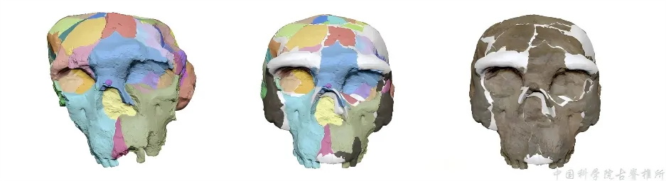 重建后的郧县人2号头骨呈现出原始与进步特征交融的形态:低平的额骨和突出的吻部类似更古老的直立人或海德堡人;而扁平低矮的颧骨、更宽的后脑颅以及较大的脑容量,则与龙人以及大荔、金牛山、华龙洞、许家窑等地出土的中更新世人类化石相似。这件百万年前的头骨脑容量竟超过1100毫升。