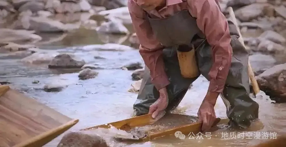 “砂里淘金”则体现了沉积作用的分选能力。黄金的密度是砂粒的7倍多,当河水流动时,砂粒被轻易带走,而金粒则因重量大沉积在河床底部、漫滩或石滩缝隙处,形成可供开采的砂金矿。这种“重者下沉、轻者上浮”的现象,是沉积地质学中机械沉积分选作用的典型案例,也让古人在实践中掌握了寻找黄金的智慧。