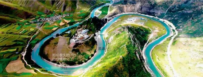 > 河流凸岸边缘一条狭窄的“沙白”、河道内清晰可辨的“渚清”