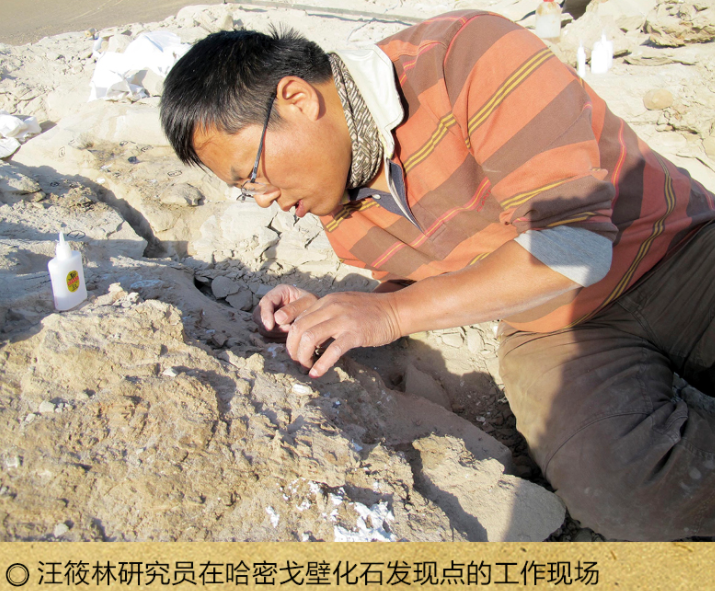 2014年,美国《现代生物学》杂志报道了来自哈密戈壁发现的化石标本:包括约40个同一属种的雌、雄翼龙个体和它们的5枚翼龙蛋化石。这是世界上首次报道的三维立体保存的翼龙蛋化石。汪筱林将这种新翼龙命名为“天山哈密翼龙”,以纪念化石发现地及天山于2013年入选世界文化遗产名录。