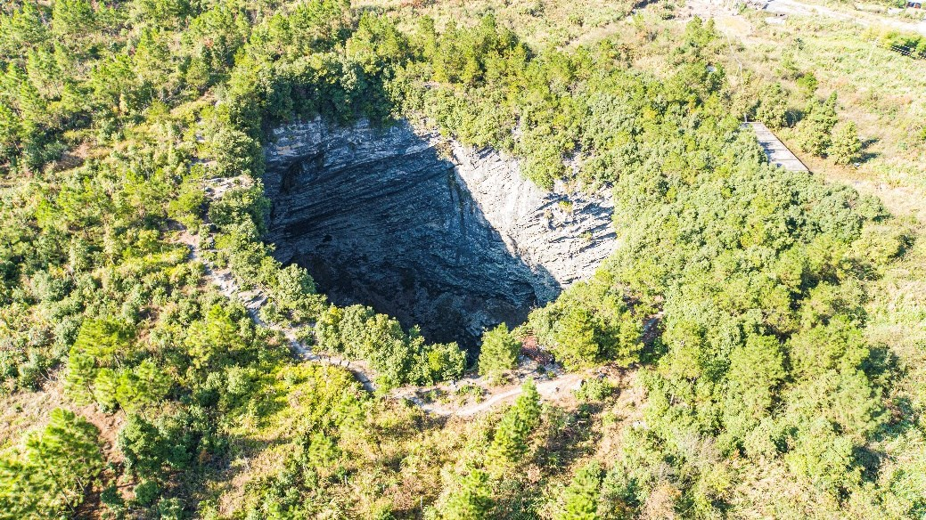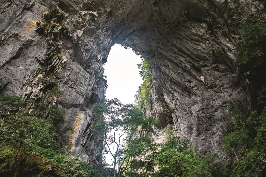 在公园东北部的岩溶高原上发育了极为罕见的天坑—乳源通天箩,形态酷似一个倒伏的米箩,故名“通天箩”。它是完全封闭的下降洞,垂直深度约 97 米,井口直径约 70 米,阱底最大直径 140 多米。该洞穴景观在广东独一无二。