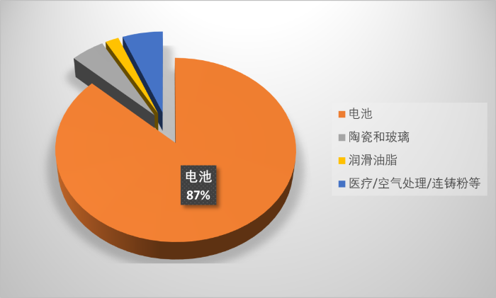 2023 年全球锂资源消费结构占比(美国地质调查局,2024)