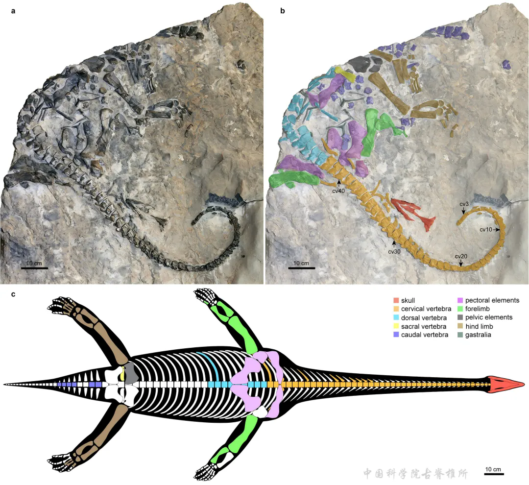 近日,李淳课题组联合当地博物馆,报道了幻龙类新属种“永胜丽江龙”(Lijiangosaurus yongshengensis),代表了最早具有超长颈部(颈椎数量超过30节)的鳍龙类,改写了我们对鳍龙类中这一关键演化特征的认知,为蛇颈龙类的长颈之谜提供了佐证。