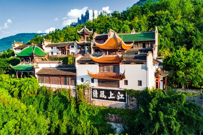 因三峡工程蓄水,张飞庙于2002年10月启动整体迁建,溯江而上30千米至云阳县盘龙街道龙安社区。这是我国文物迁建史上搬迁距离最远、文物等级最高的工程案例,也是新中国成立以来第二个国宝级地面文物建筑群整体迁建项目。工程严格遵循“搬旧如旧”原则,于2003年7月19日完成复建并对外开放,迁建后的张飞庙与云阳新县城隔江峙立,朱楼飞檐倒映碧波,尽显雅致。庙内珍藏有岳飞、苏轼、黄庭坚等历代名人碑刻字画,素有“张祠金石、甲于蜀东”的美誉。其中,被誉为“三绝碑”的岳飞手书《出师表》,更以“文章绝世、书法绝世、镌刻绝世”闻名天下。庙宇坐岩临江,庙内结义楼、杜鹃亭等古建筑布局严谨、错落有致,山水园林与庙宇建筑浑然一体、相互衬托,既透着北方古建筑的雄浑大气,又藏着江南园林的婉约灵秀,因此,这里享有“巴蜀胜境、文藻胜地”的盛名。
