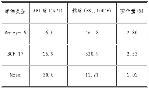 委内瑞拉出产的大多数原油属于重质油或特重质原油。例如一份2006 年的分析显示,Merey16 原油 API 度为 16.0°,37.8°C下粘度高达 461.8cSt,硫含量约 2.80%;另一种 BCF17 原油 API 度 16.9°、硫2.53%;较轻的 Mesa 原油 API30.0°、硫 1.01%[5]。可见委内瑞拉原油普遍密度大、硫含量高,属于重质高硫类型。
