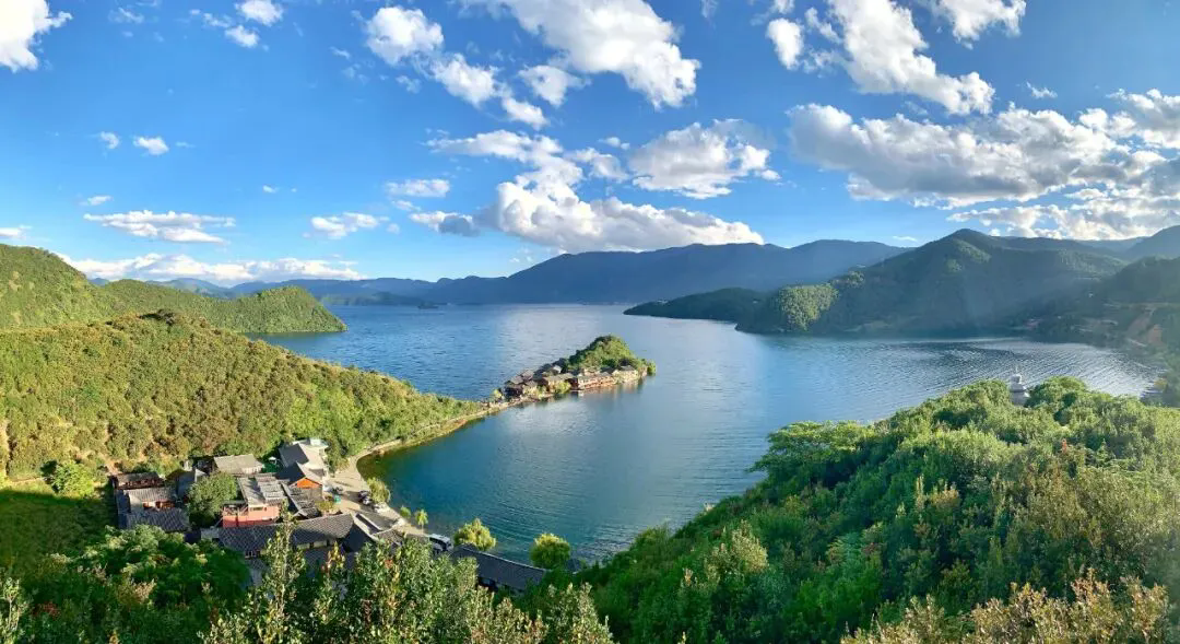 其中,云南一侧的黑瓦吾岛、里无比岛和里格岛,成为湖中最具观赏和游览价值的三个景点,被誉为“蓬莱三岛”。黑瓦吾岛位于湖心,距离湖岸落水村2500米,岛上树术葱茏,百鸟群集,是南来北往的候鸟、野鸭的栖息之处,也是昔日永宁土司阿云山总管的水上行宫,美国学者洛克也曾旅居于此。