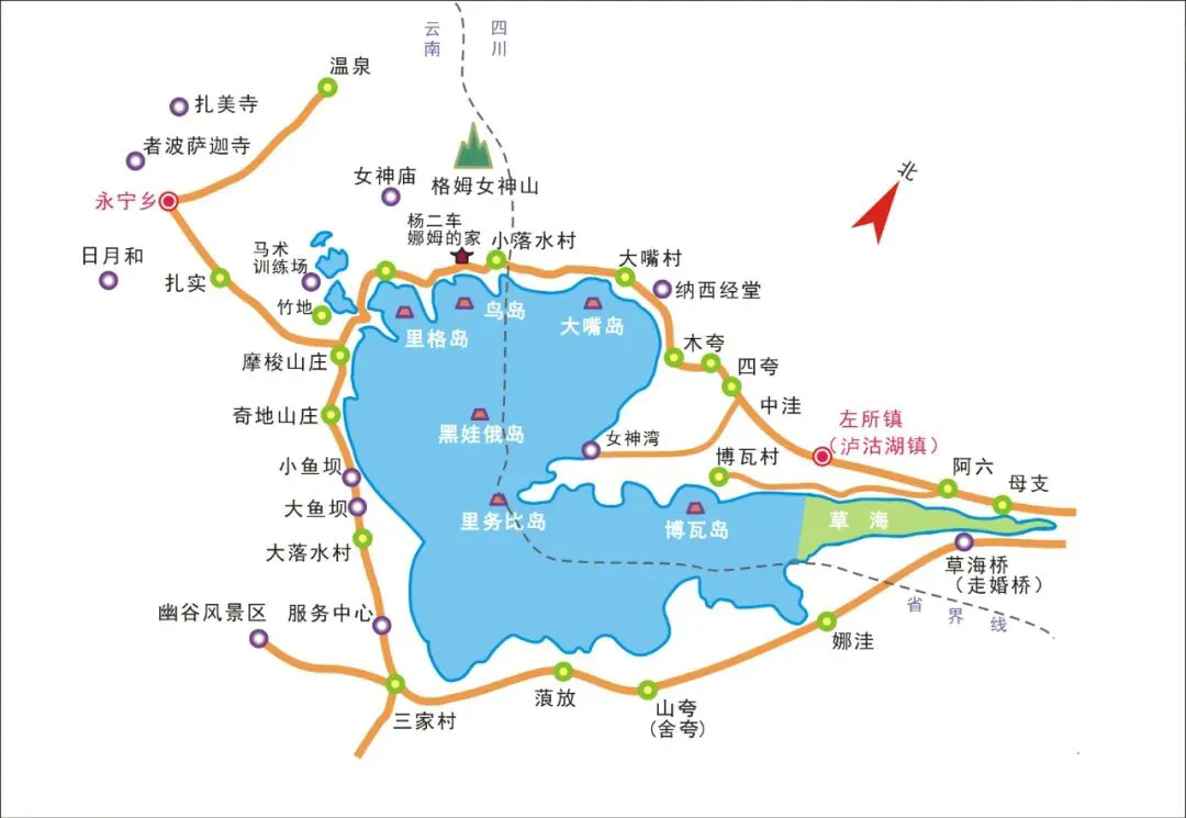 泸沽湖景点示意图
