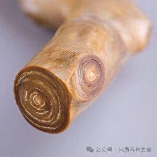 外部特征:两类珊瑚在外部特征上也存在一定差异:角质型珊瑚的横截面显示如树木年轮般同心环状结构,表面常见有微小凸起,如人的头皮毛囊,又如小丘疹一般。