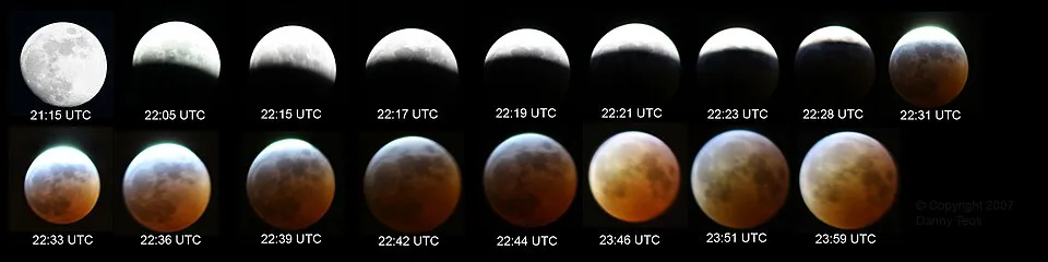 2007年3月3日 一次月食的过程 图片来源:wiki