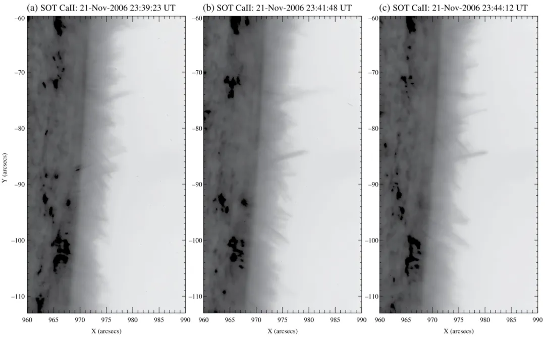 图三 Ca II波段下的针状体,图源Hinode