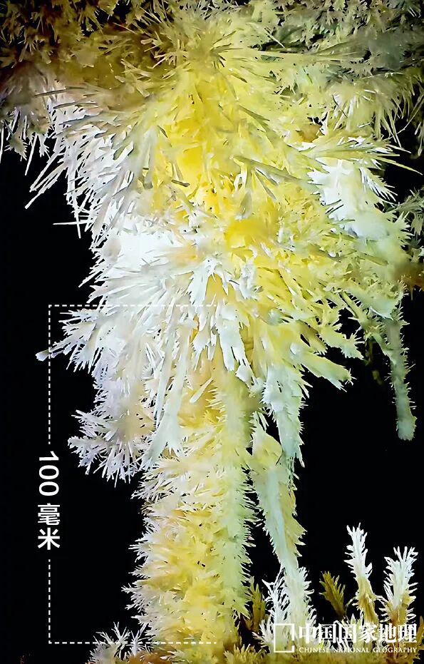 文石花的形态有着不规则、多样的变化,如柱状、枝状、纤维状、放射状等,摄影 / 叶雄辉