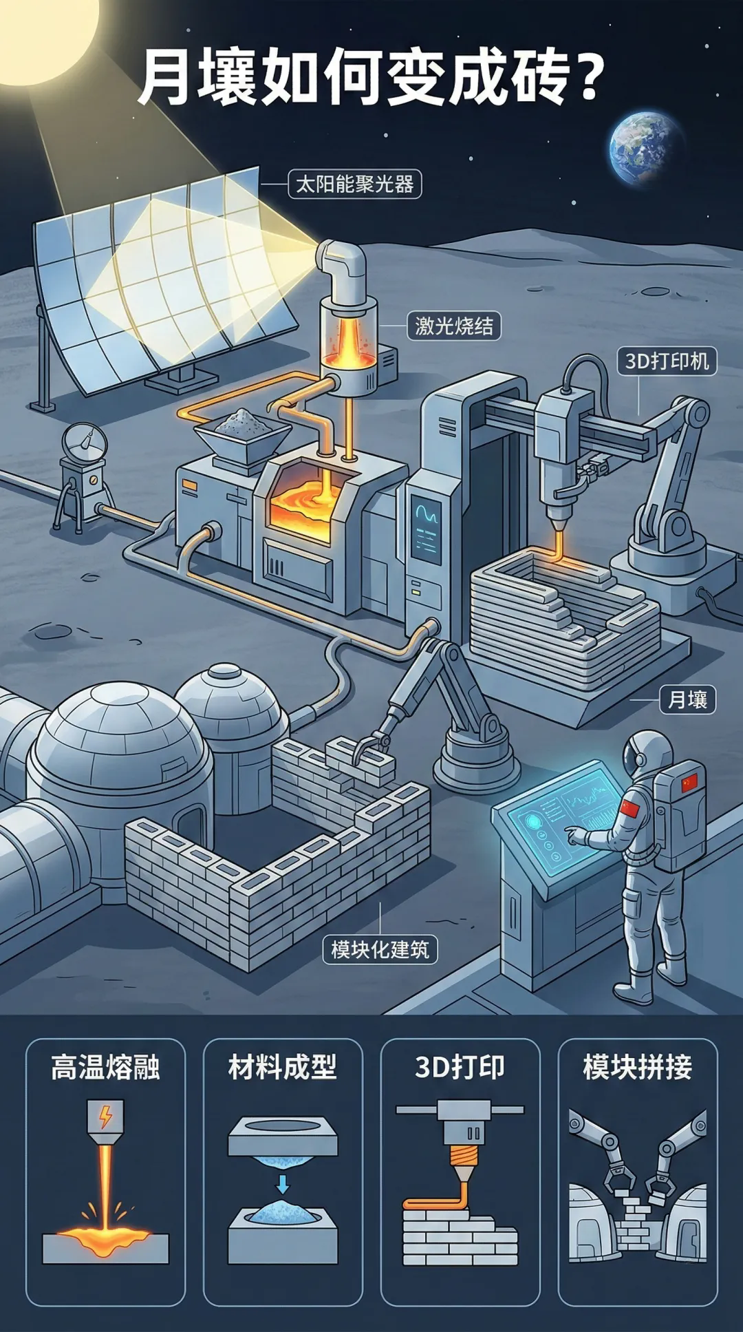 当人类把目光投向38万公里之外的月球,一个看似简单却至关重要的问题随之出现:未来如果要在月球长期驻留,人类将用什么材料建造基地?答案,很可能就来自月球表面的尘土——月壤。