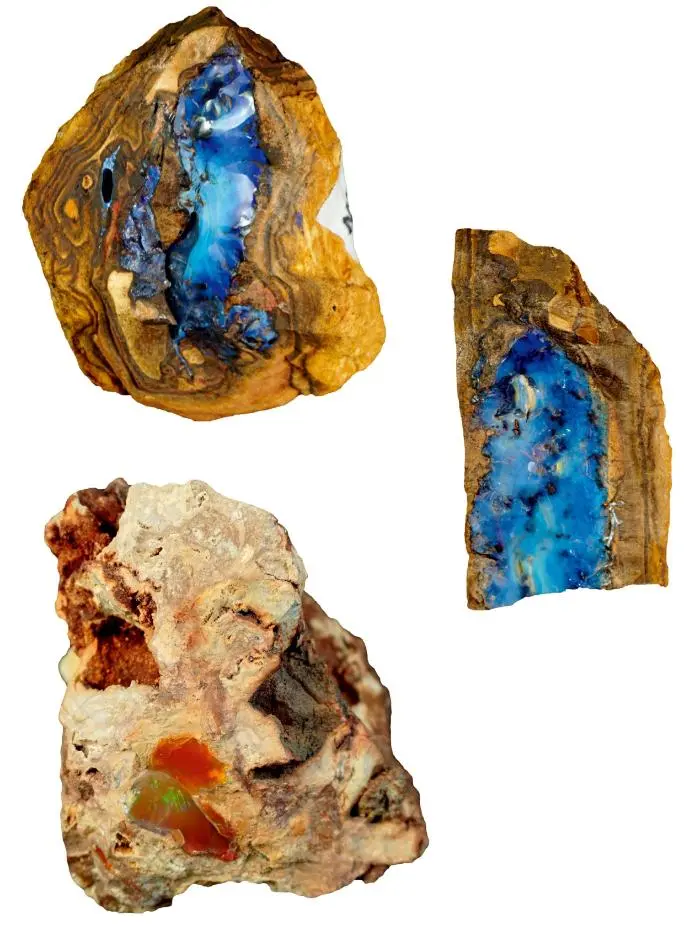 欧泊的形成与地质环境和化学过程密切相关,通常孕育于沉积岩或火山岩中。其形成伴随复杂的物理化学反应,过程可简述如下:硅酸盐溶液渗入岩石或土壤的裂缝后,随着水分逐步蒸发,富含硅质的凝胶不断硬化,最终形成蛋白石。这一过程往往需要数万年乃至数百万年。
