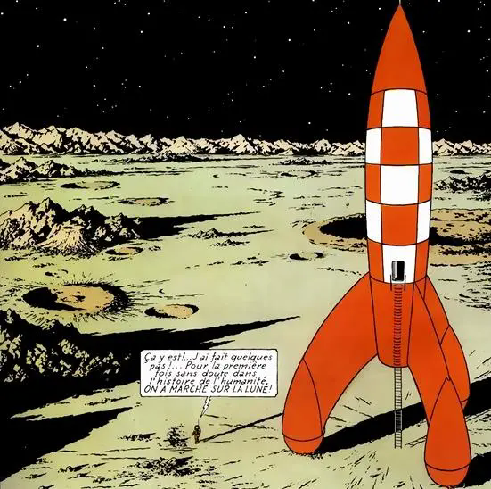 漫画中登月火箭的动力来自于原子能(图:丁丁历险记)