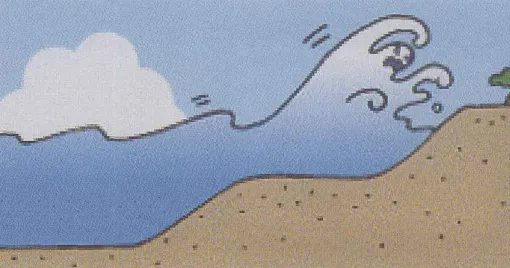 沿海地区一般有大的地震和火山喷发的话就可能引起海啸,海啸与人们通常在海边或湖泊中见到的由风产生的周期和波长短、能量小的浅水波不同,这种波通常是由地震、火山、滑坡等动力作用引起的水波,波长可达上百千米,周期长达几分钟乃至一小时,传播速度每小时可达700千米,且在长距离的传播过程中消耗较少的能量,因此传播的距离大。