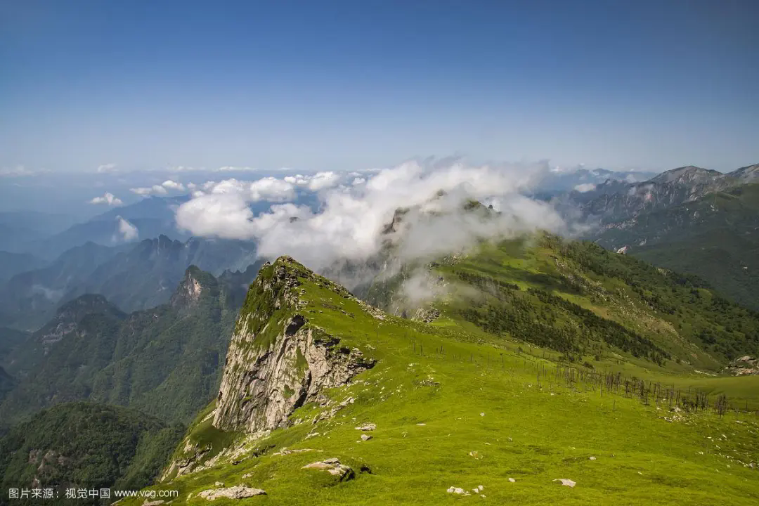 中华龙脊 秦岭主峰太白山位于陕西省宝鸡市眉县、太白县和西安市周至县交界处,最高点拔仙台海拔3771米,也是陕西省最高峰。