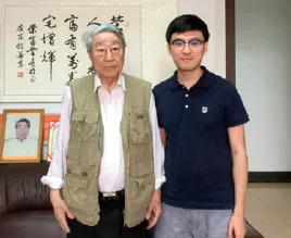 笔者带着整理好的野外资料向裴先生进行了详细汇报。还记得那天裴先生穿着野外马甲,把铺满沙发的资料书籍整理到一旁,才空出地方面对面落座。他听取汇报后表现出浓厚的兴趣,激动地讲解“共(源)岩浆补余分异作用”理论的核心观点。先生当年就读于清华大学地质学专业,那时采用的是全英文授课,因此很多专业名词他更熟悉英文表达。笔者至今仍对这堂由93岁老者讲授的中英文双语课程记忆犹新。