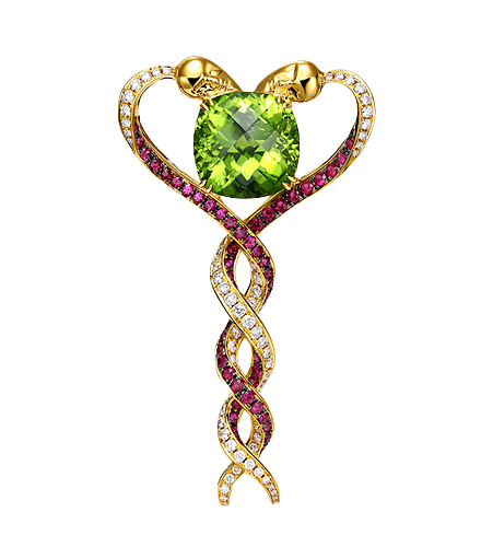 大约在3 500年以前,人们在古埃及领土圣约翰岛发现了这种美丽的绿色宝石。随着时间推移,橄榄石逐渐在世界各地被发现和珍视。直至1905年,宝石级橄榄石在世界各地相继发现,这使得橄榄石的地位更加稳固。由于其颜色艳丽悦目、光泽温润,橄榄石给人以心情舒畅和幸福的感觉,因此又被誉为“幸福之石”。