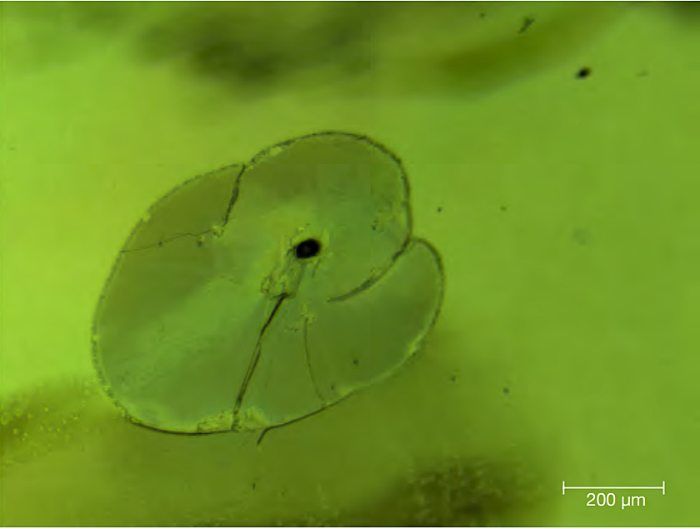 橄榄石内部常含有诱发扁平应力裂纹的铬铁矿晶体,这些晶体看上去像睡莲的叶子,这些内含物也成为橄榄石最显著的特征。