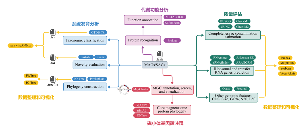 图4 推荐的趋磁细菌基因组分析流程及相关生物信息学工具