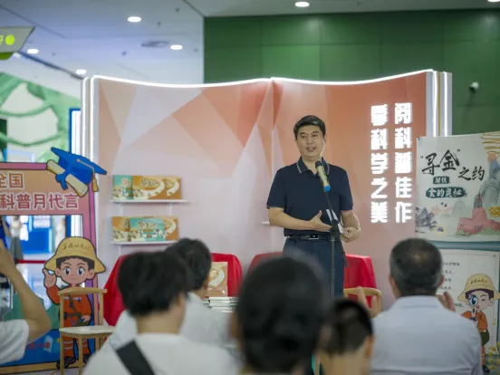 2025年9月13日下午,由山东省地矿局第六地质大队和中国地质图书馆联合创作、科学普及出版社出版的原创科普绘本《寻金记》图书分享活动在中国科学技术馆成功举行。山东省地质矿产勘查开发局党委常委、副局长张辉和科学普及出版社副总编崔玲为活动揭幕。