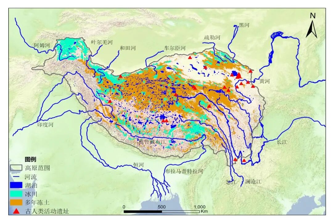青藏高原作为地球“第三极”,高处不胜寒,在历次冰期的低温考验中首当其冲,最后一次冰期青藏高原冰川显著扩张,雪线大跨度下降,冰川面积约是现在冰川面积的7倍,达35万km²,占青藏高原面积的16%,雪线下降最高达1.5km。让人意外的是,在如此寒冷的高海拔区,竟然有史前人类活动,有的还深入了青藏高原腹地。2013年在色林错发现的4万年前的尼阿底遗址刷新了青藏高原腹地最古老人类活动记录,1980年青藏高原东北缘夏河县发现的丹尼索瓦人化石将人类在青藏高原活动的记录推前至16万年前。我们不禁遐想,这些远古先人们是否经受住了冰期严寒的考验?有无享受到间冰期温暖湿润气候的馈赠?1.17万年前最后一次冰期结束,随着气候暖湿化,青藏高原冰川大幅退缩、湖泊扩张、河流径流量增加,黄河流域史前人类逆流而上、向高原迁徙,语言学与遗传学研究表明,现代藏族人群的主体源自5000年前后向青藏高原大规模扩散的仰韶文化、马家窑文化的粟作农业人群。