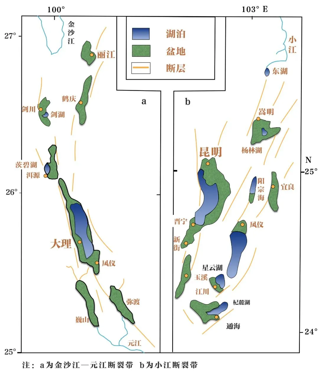 云贵高原重要断陷湖分布示意图 图自《中国国家地理》2023年10月