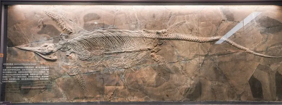 鱼龙化石分布广泛,我国安徽、贵州、云南、西藏、广西等地均出土过不同属种的鱼龙化石。贵州地区是中国鱼龙化石的重要发现地之一,出土了邓氏贵州鱼龙、梁氏关岭鱼龙、盘县混鱼龙、蔡胡氏典型鱼龙、周氏黔鱼龙等多种鱼龙化石。西藏珠穆朗玛峰地区发现的喜马拉雅鱼龙体长可达10余米,它的发现证明了喜马拉雅地区曾是一片浩瀚的海洋。一块块鱼龙化石的发现揭示了古代海洋生态系统的复杂性和丰富性,为我们提供了生物演化的宝贵信息。