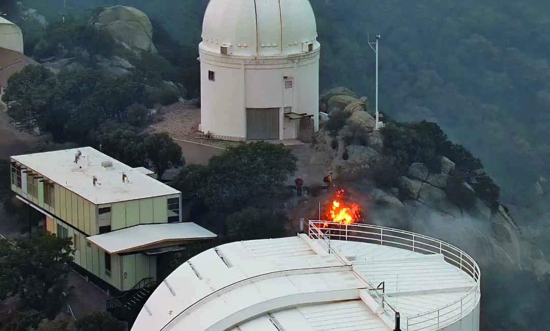 基特峰,基特峰4米长的梅奥尔望远镜的视图显示,2022年的孔特雷拉斯大火威胁着天文台。